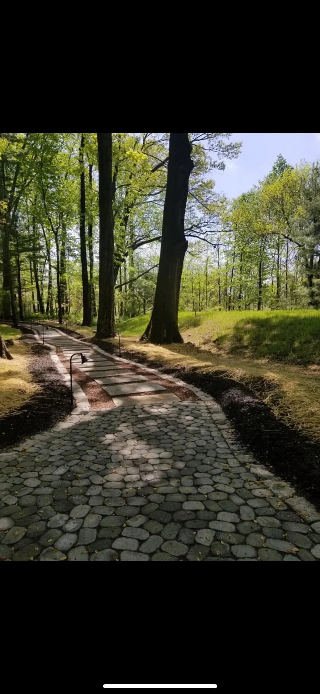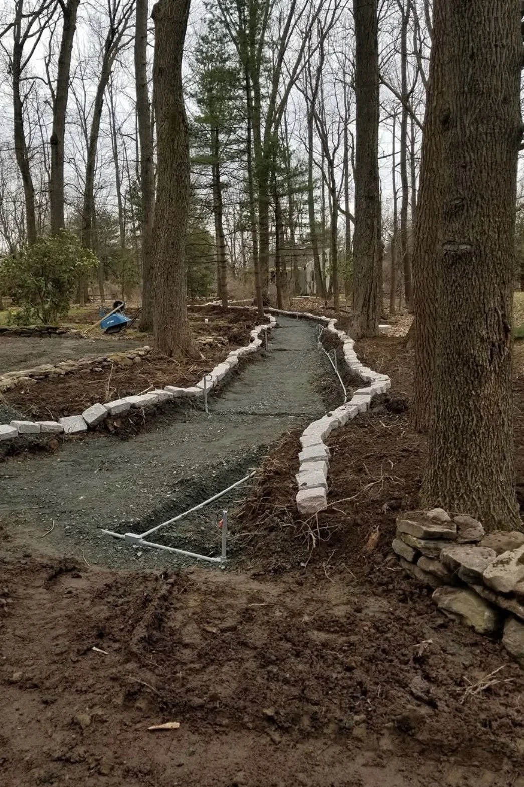 The stones along the path were chosen as this home was built on a hill. The wind, had it been mulch, would have blown the mulch into the pool.