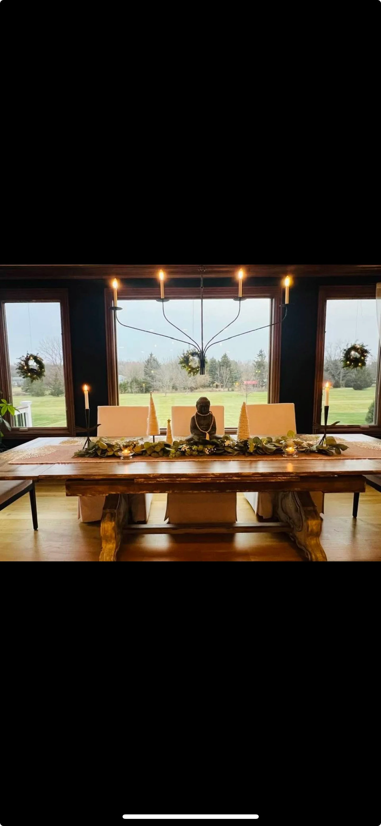 We added wood beams to the dining room to create a more cozy space. I also added plantation shutters that matched the living room to create connection and flow in the home.